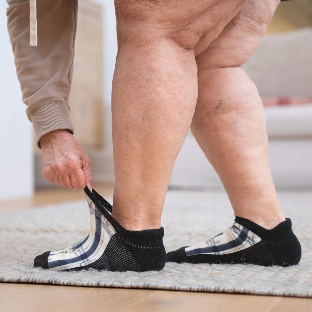 Designed to stretch and support swollen ankles and feet, providing relief and comfort.